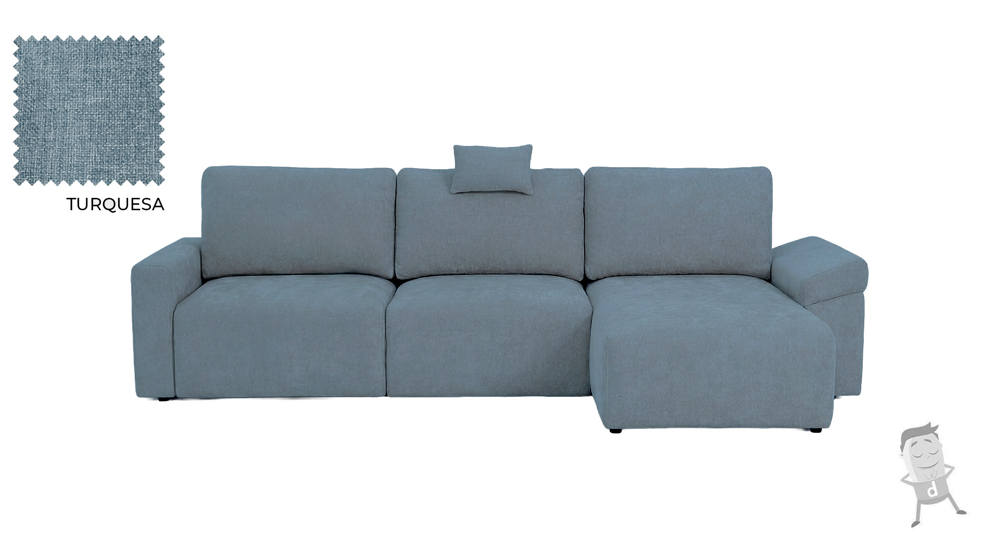 Esta versión del modelo Nuva mide 112 cm de fondo en los asientos, 174 cm de fondo con el chaise longue y 295 cm ancho. |